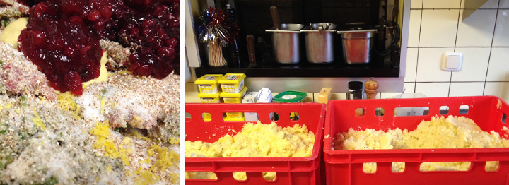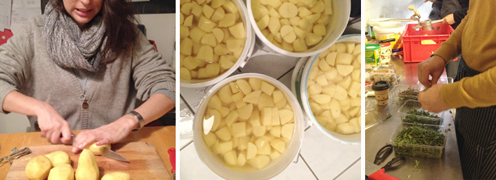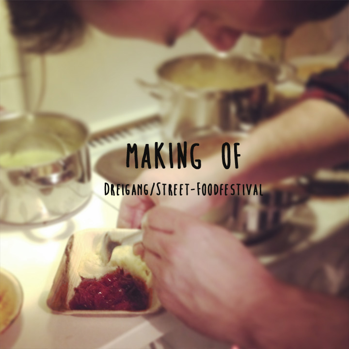 Was gibts zu Essen? Welches Geschirr? Woher die Produkte? Wie soll der Stand aussehen? Wir brauchen ein Logo… Es gibt viel zu tun und am Ende soll alles zusammenpassen. Unser Koch Denis entwickelt das Menü, wir touren gemeinsam durch die Eifel auf der Suche nach Lieferanten für unser Dreigang-Menü. Das Ganze nimmt Gestalt an, das Menü wird probegekocht, kalkuliert und fotografiert… Großeinkauf, Kartoffeln schälen mit Freunden , 30 kg Wildschweinhackfleich in 900 Frikadellen rollen, 25 kg Kartoffeln und Pastinaken pressen. Viele helfende Hände beim vorbereiten, kochen, verladen und aufbauen. DANKE an alle, die geholfen haben! Wir, unsere Freunde und Gäste hatten einen wunderbaren Tag!