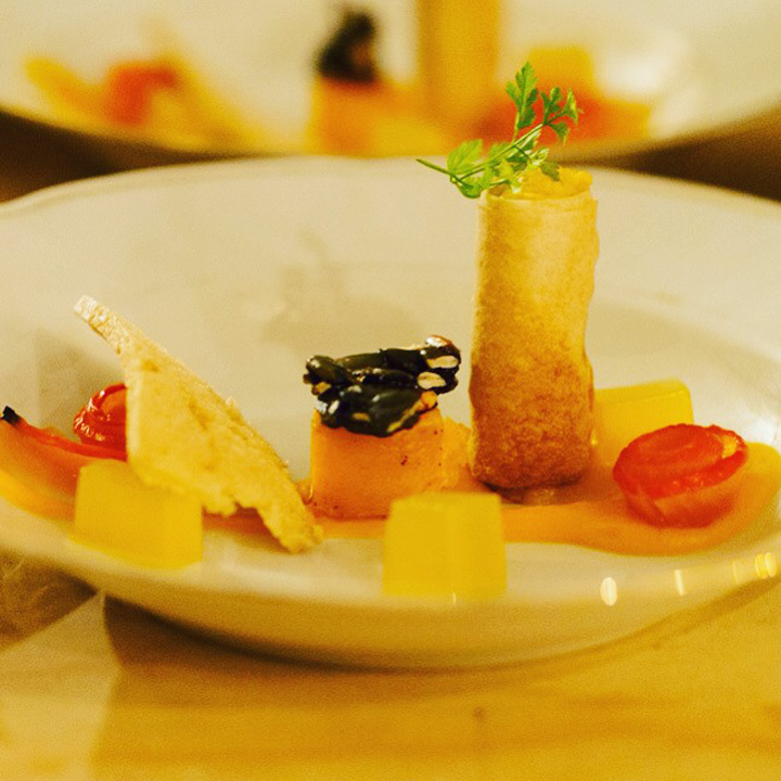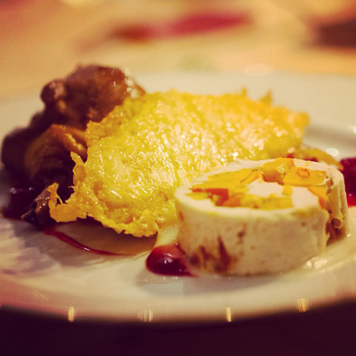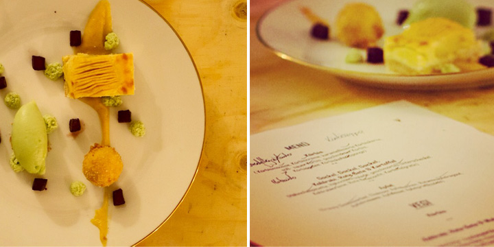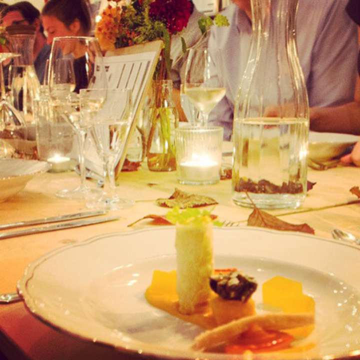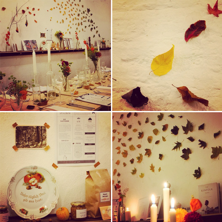 Im Keller fliegen die Blätter und auch das Menü von Eiko kann nur eins bedeuten: Der Herbst ist da! Und das kann man ruhig mal feiern! Im ersten Gang zeigte Eiko was man so alles mit einem bzw. verschiedenen Kürbisen anstellen kann: Kürbiscreme, Kürbisgelee und süss-saurer Kürbis mit karamellisierten Kürbiskernen und Kürbisbrot. Im Hauptgang gab es dann dreimal Gockel: geschmortes Oberkeulchen, Hähnchenpikatta und eine mit Kürbis gefüllte Roulade, ebenfalls vom Gockel! Dazu eine Kohlrabicreme, ein Rote Beete Confit und Kartoffelgratin. Als Nachtisch kam der Apfel in all seinen Konsistenzen auf den Teller. Zunächst in Form eines Elsässer Apfelkuchens, dann einen Apfelgriesknödel mit Amarettinibröseln, dazu ein Sorbet vom grünen Apfel und als i-Tüpfelchen einen in Rotwein und Gewürzen marinierten Apfel. Uff… das hörte sich auf der Speisekarte erstmal viel einfacher an, aber das musste jetzt schonmal erklärt werden. Für uns alle war es wieder ein rundum gelungener Abend für den wir uns bei allen von Herzen bedanken möchten! Also weiter geht´s… denn nach dem Supper Club ist vor dem Supper Club.