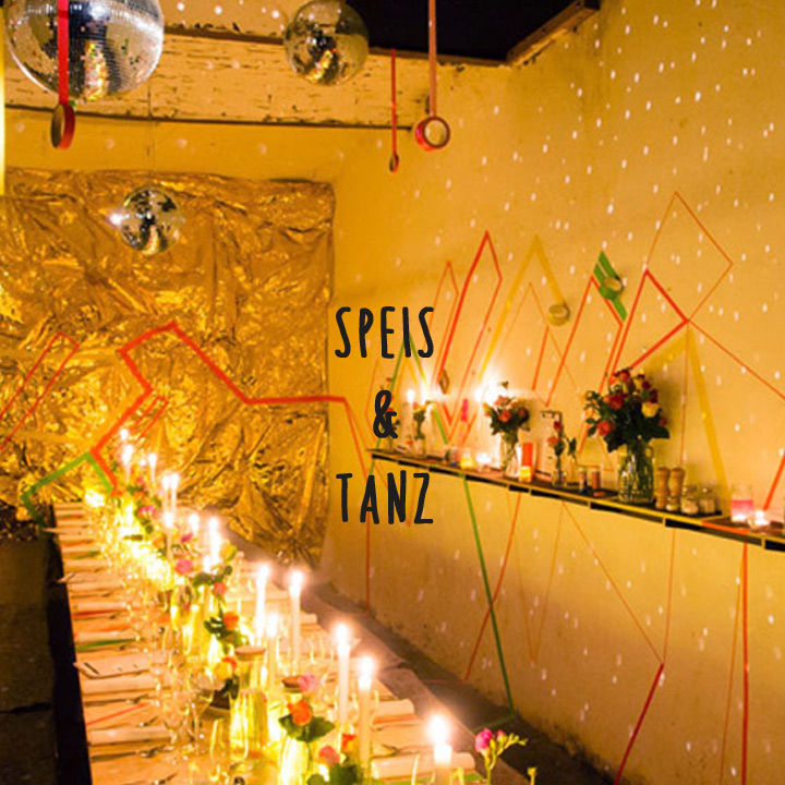 Alles ein bissl anders diesmal… alles ein bissl in Gold getaucht… Golden Years mit Neon Streifen… und endlich good bye Jackenhaufen – hello, Jochen´s selbsteingefädelte Garderobe… Was natürlich bleibt, ist unser Dreigang – Menü gekocht von Eiko Scharfenberger: Maronensuppe mit Rotkohlravioli und Honigkrokant, Hirschbraten mit Rosenkohlcreme und zweierlei Knödeln und als krönender Abschluss eine gebrannte Creme von Zimt und Rum mit einem Orangenragout und Moccaeis – lecker, lecker, lecker! Dann drehten sich Discokugel und Plattenteller… Speis & Tanz – auf jeden Fall eine gute Kombination. Aber für alle Freunde der Gemütlichkeit, keine Sorge, wir werden in Zukunft nicht jedes Mal die Bänke abbauen… ganz sicher!