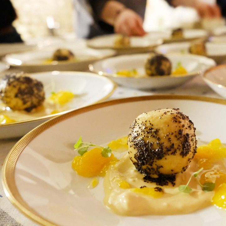 Auch zum Dessert geht die Knolle: Kartoffel- Quark Bällchen in Mohnbutter gewälzt, dazu eine Zimtsauce und Mandarinen. Alle am Tisch waren begeistert – Der Dank geht an dieser Stelle an Eiko – es war ein grandioses Menü!