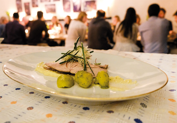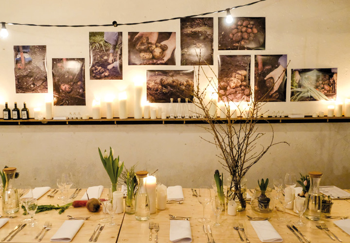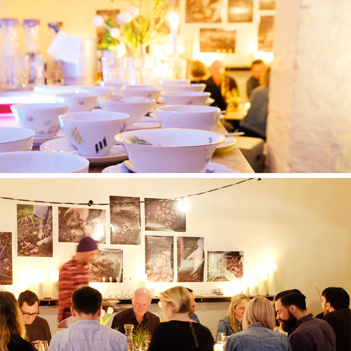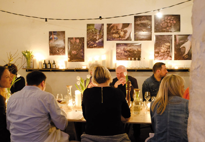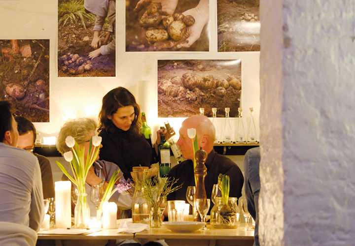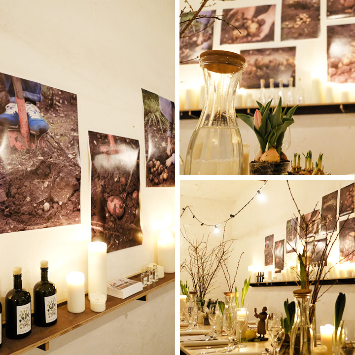 überall! Auf jedem Teller und an der Wand! An diesem Abend haben wir die Knolle mal gebührend gefeiert! Im Sommer hatte Eiko ähnliches mit der Kirsche zelebriert, diesmal war es eben die Kartoffel, die in jedem Gang die Hauptrolle spielte. Wir waren von Anfang an begeistert, das Menü einmal voll und ganz auf die Kartoffel auszurichten…