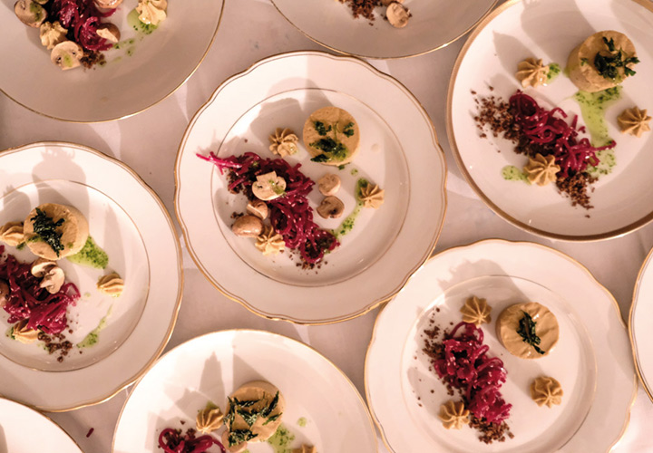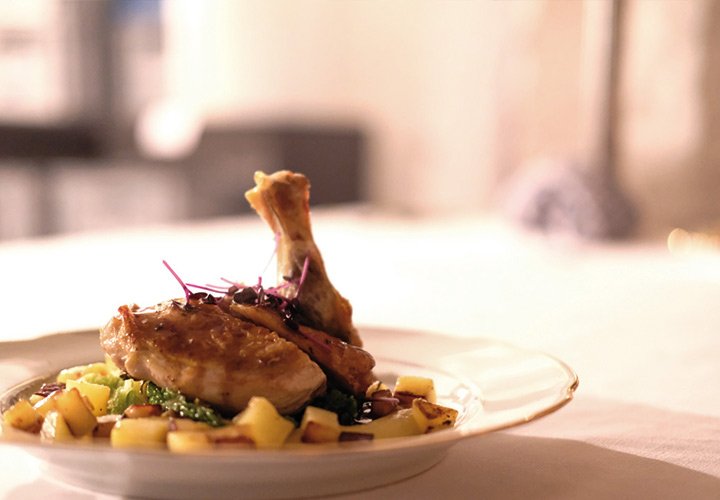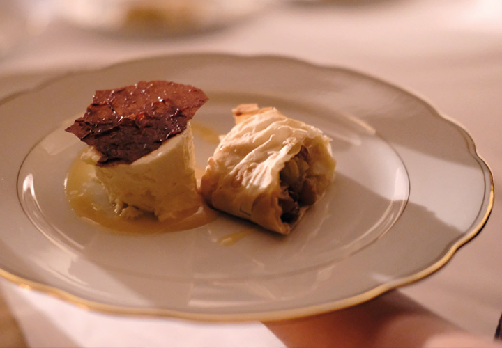 In der Vorspeise gab es eine Kombination aus Rote Beete und Champignion: Panna Cotta vom Champignion, marinierte Pilze, ein Rote Beete Salat und dazu ein Kräuterpesto. Im Hauptgang das Perlhuhn mit Pommes Carreés und frischen Wirsing! Zum Abschluss das Dessert: Apfelstrudel mit weißem Schokoladenparfait, Vanillesauce und Schokoladenkrokant. Lecker, lecker, lecker!!!!