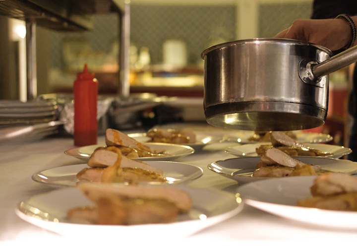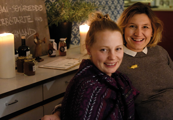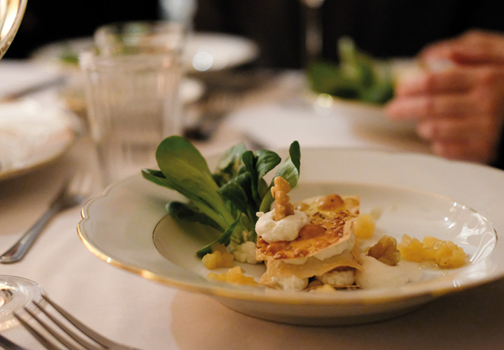 Aber nun zum ganzen Menü. In der Vorspeise gab es Ziegenkäsemousse, Quittenragout, Feldsalat, Walnuss & Kardamonsirup … sehr fein und eine so leckere Kombination! Weiter ging es im Hauptgang mit Maispoularde, Topinambur, Chorizo & einer dunklen Geflügeljus. Das Asye, wie alle die zum ersten Mal bei uns kochen ein bissl nervös war, merkte man dem Essen überhaupt nicht an. Alles lief super und genauso hat es auch geschmeckt! Den Abschluss machte dann das Dessert mit Chai – semifreddo, Kürbistarte & Schmand. Auch hier war die Kombination von Chaigewürzen und Kürbis einfach nur lecker und ist uns allen auf der Zunge zerschmolzen… und zu allem Glück, gab es auch noch Nachschlag von Ayse persönlich.