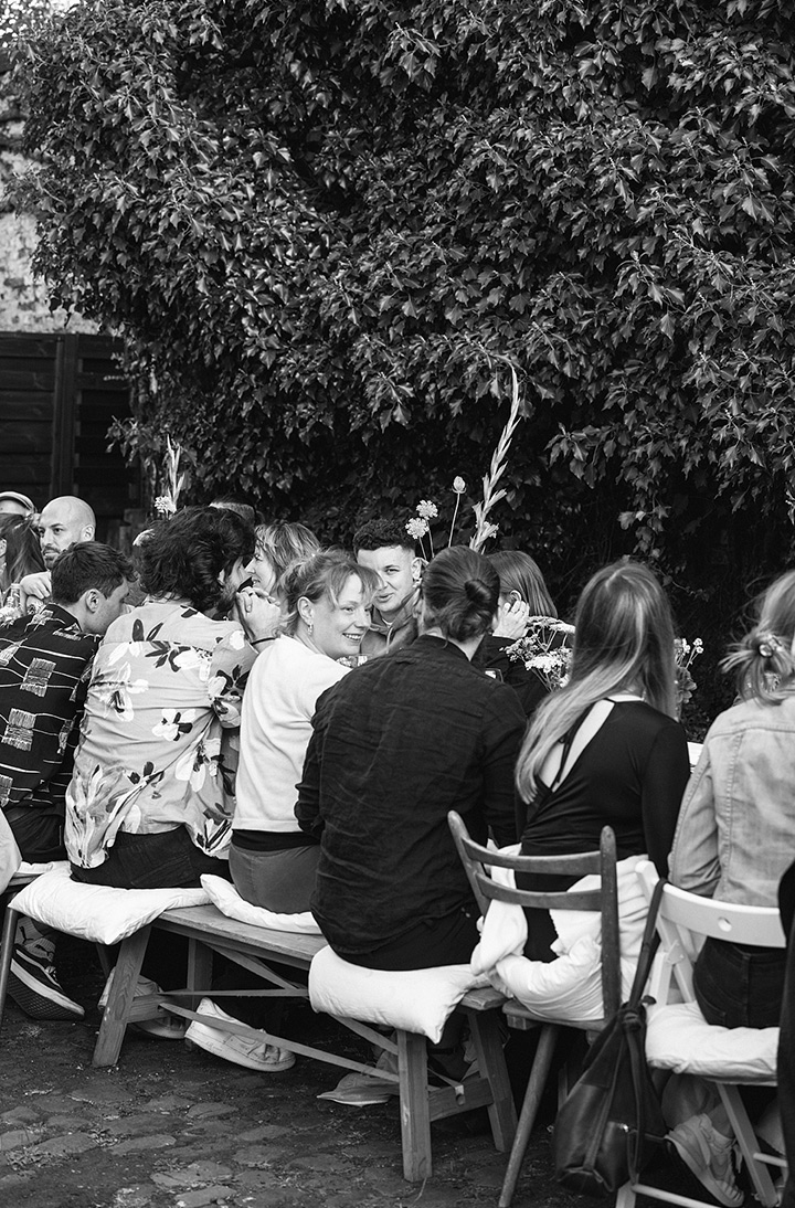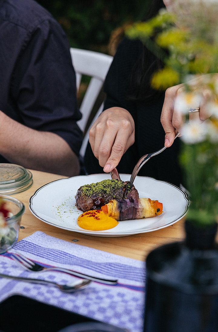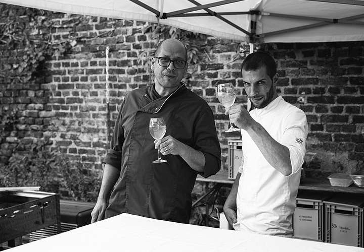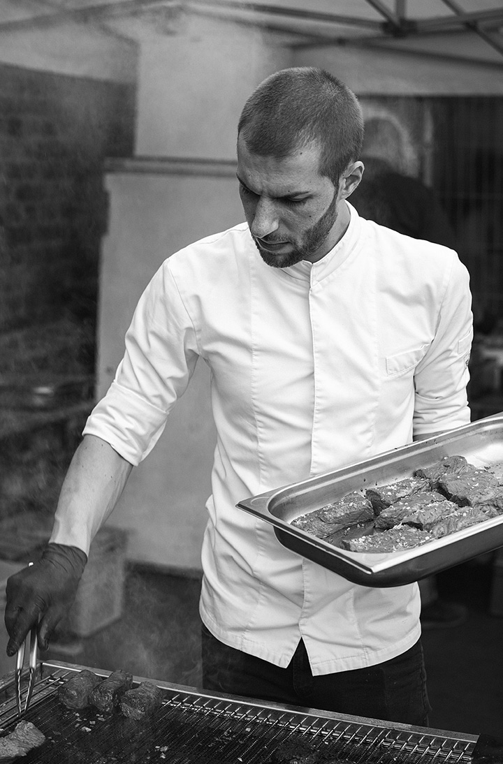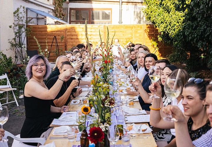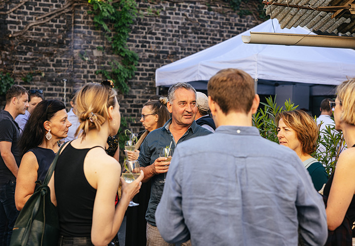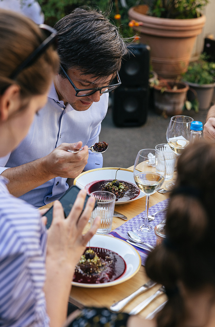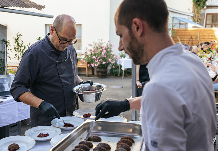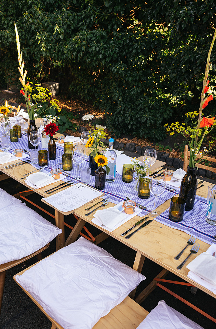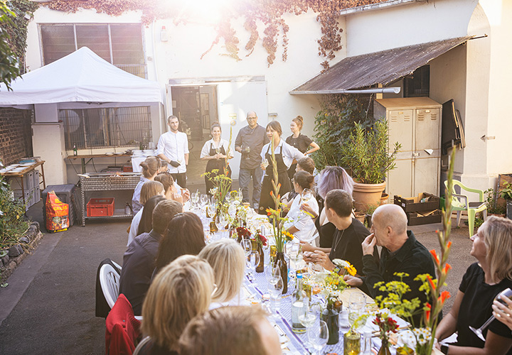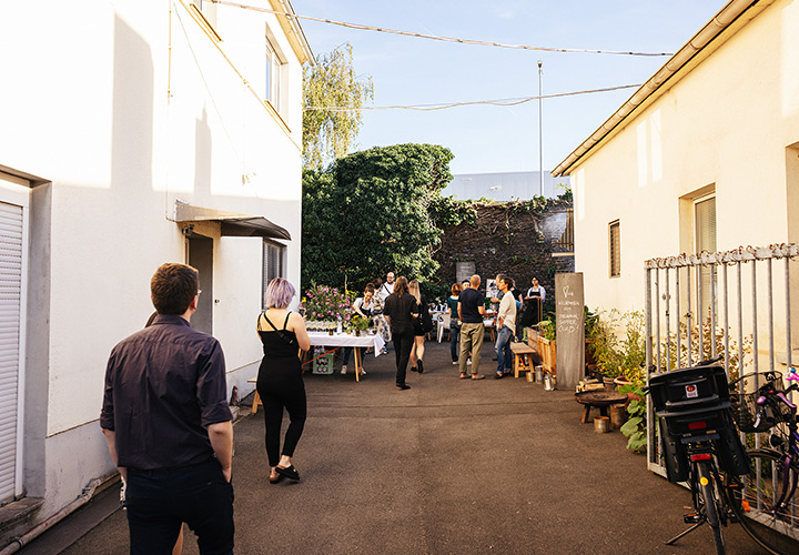 Unser erster Supper Club unter freiem Himmel fand im Hinterhof des Ateliers von Franz Baumgartner statt. Ein ziemlich versteckter Ort auf einem Industriegelände in Ehrenfeld. Genau richtig für unseren Supper Club und perfekt um unseren Holzkohlegrill aufzubauen ; ) Die Chance hat Sebastian genutzt und es gab im Hauptgang und im Dessert, Komponenten bei denen der Grill zum Einsatz kam.