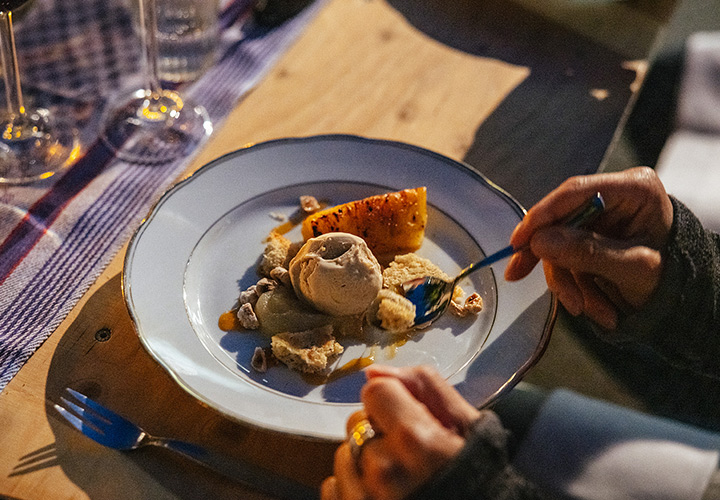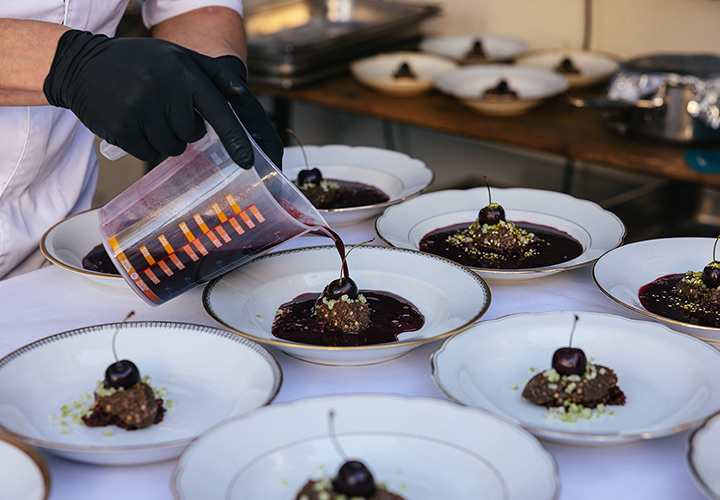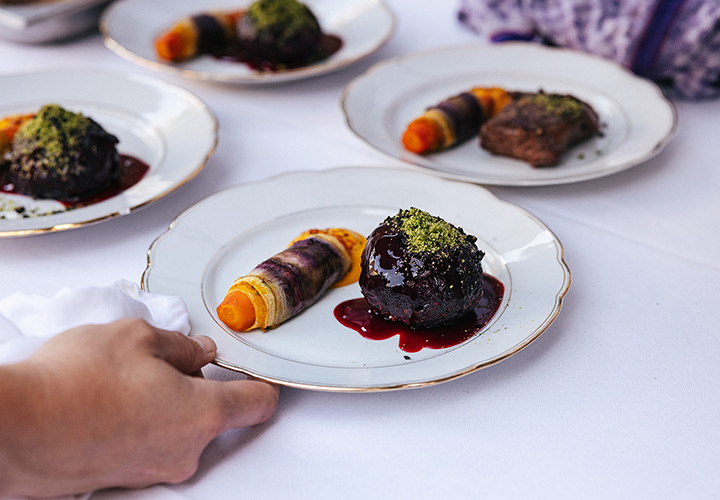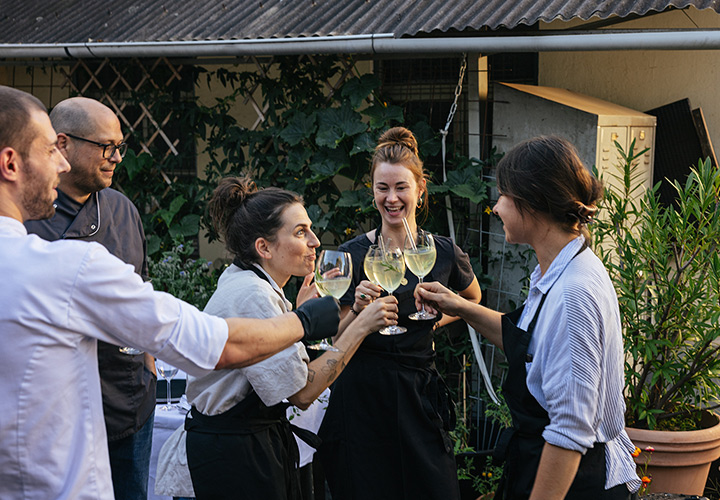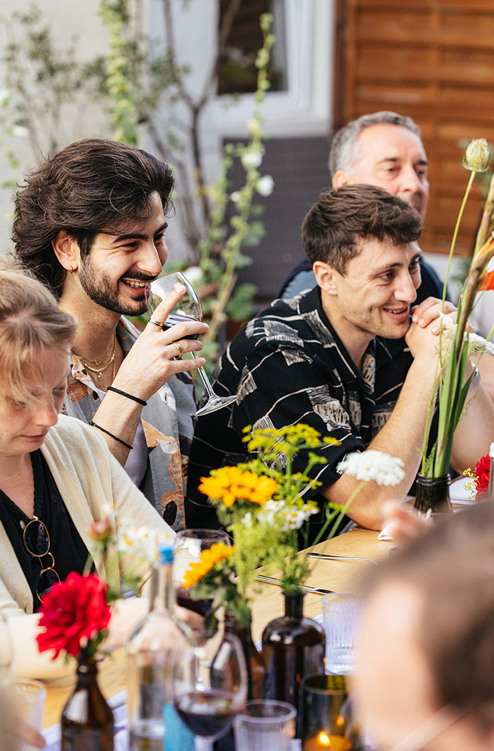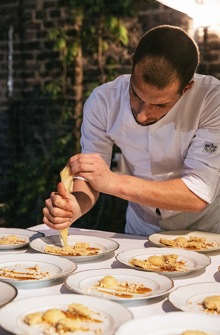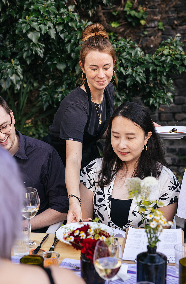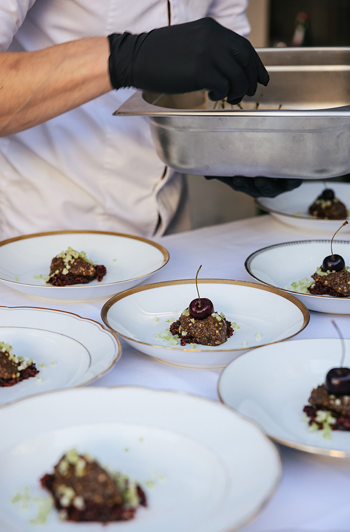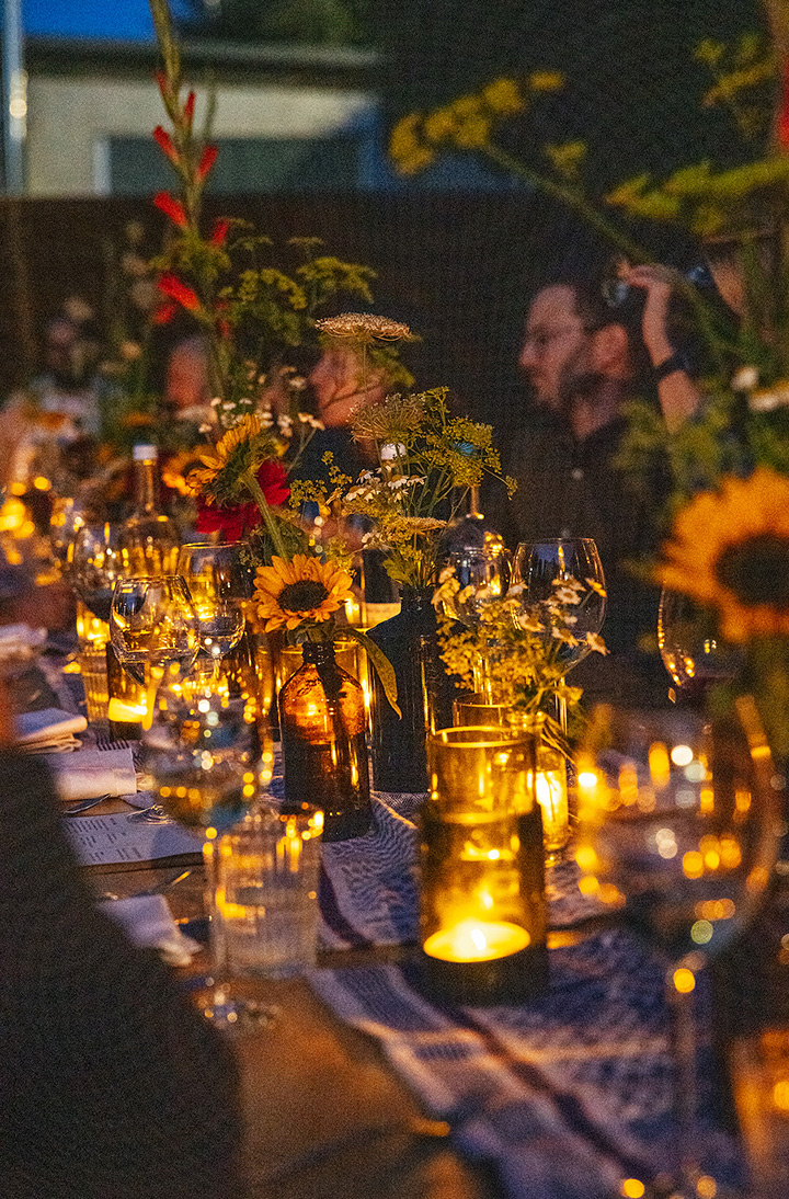 Unser erster Supper Club unter freiem Himmel fand im Hinterhof des Ateliers von Franz Baumgartner statt. Ein ziemlich versteckter Ort auf einem Industriegelände in Ehrenfeld. Genau richtig für unseren Supper Club und perfekt um unseren Holzkohlegrill aufzubauen ; ) Die Chance hat Sebastian genutzt und es gab im Hauptgang und im Dessert, Komponenten bei denen der Grill zum Einsatz kam.
